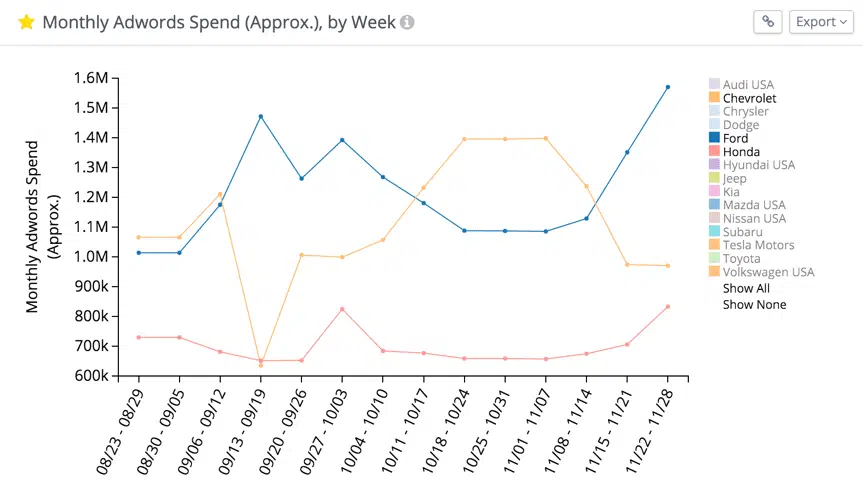 Il est intéressant aussi d’identifier et d’analyser les pics de trafic web – cela permet en général d’en apprendre sur la stratégie de vos concurrents.