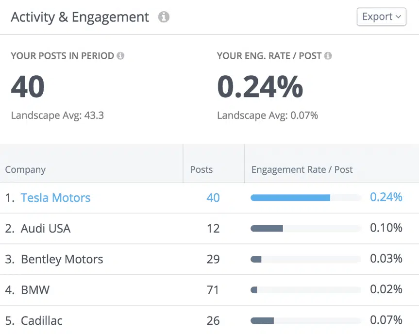 L’intérêt, ici, n’est pas de connaître le nombre d’abonnés qu’ont vos concurrents (ça n’a pas tellement d’importance), mais d’analyser l’engagement des abonnés vis-à-vis des contenus publiés par vos concurrents pour identifier des opportunités et améliorer votre propre stratégie. Quels sont les contenus publiés sur les réseaux sociaux ? Quels sont ceux qui sont le plus partagés et commentés ? Ce sont les questions auxquelles les trois outils ci-dessous vous aideront à répondre.