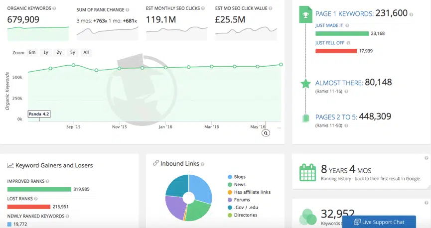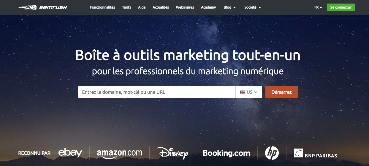 SEMRush est un outil de référence pour l’analyse SEO et SEA. Il vous suffit de renseigner l’URL de votre concurrent dans la barre de recherche pour accéder à des données SEO très précises. L’avantage de SEMRush, c’est qu’il propose des analyses globales, intégrant le SEO et le SEA (SEM = SEO + SEA). C’est un outil indispensable pour analyser la stratégie de vos concurrents sur les moteurs de recherche. A noter que SEMRush permet aussi de comparer entre eux plusieurs sites. Découvrez notre avis complet sur SemRush.