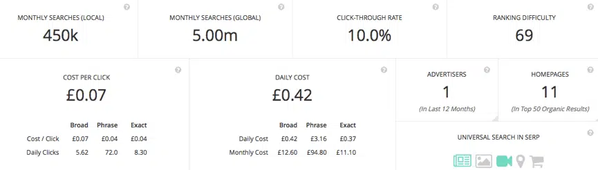 Les fonctionnalités d’analyse SEO sont également très robustes. Vous pouvez par exemple comparer les meta description, les mots-clés et les dépenses sur Google Ads.