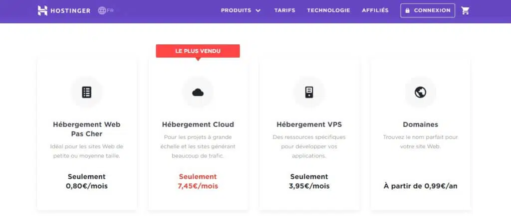 Hostinger est un fournisseur de services d’hébergement Web rapides et stables, reconnu pour ses offres accessibles et sa simplicité d’utilisation. L’entreprise propose aujourd’hui des solutions d’hébergement partagé, VPS et cloud, avec une infrastructure basée sur des technologies récentes comme les disques SSD/NVMe et des centres de données répartis à l’international.