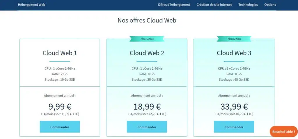 - Des solutions d’hébergement web pour chacune des trois alternatives.