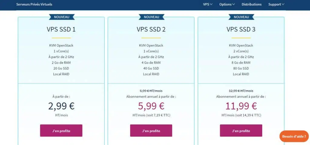 OVHcloud propose aujourd’hui une gamme de VPS évolutifs, permettant de choisir la quantité de ressources (CPU, RAM, stockage SSD/NVMe) selon les besoins du projet. Les offres sont conçues pour s’adapter à la croissance et à la diversité des usages, avec des options de gestion et de sécurité avancées.