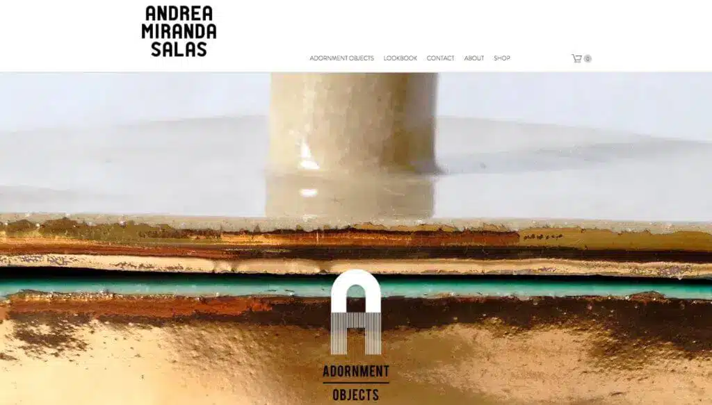 Ce site est un mix entre un site portfolio et un site e-commerce. Vous avez en effet un onglet « lookbook » dans le menu qui vous redirigera vers une multitude de photos des objets en vente sur ce site. Un véritable portfolio. Vous avez également l’onglet « shop » où vous arriverez sur la partie e-commerce. Cliquez sur un produit afin d’accéder à l’ensemble de ses caractéristiques. Une fois que vous l’aurez ajouté à votre panier, le logo « panier » affichera un « 1 » qui sera visible pendant toute votre navigation. Enfin, sur le footer, les boutons pour les réseaux sociaux, l’adresse et un encart afin de s’abonner à la newsletter.