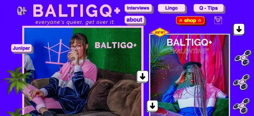 Le site BALTIGQ + est assez brutal et il vous sera très difficile de savoir où regarder. Et avec tous ses éléments clignotants, accompagnés de couleurs vives, il s’adresse à un public bien particulier. BALTIGQ + («ball-teek») est une plate-forme multidisciplinaire qui vise à créer un espace en ligne pour les membres de la communauté LGBTQ +. Leur site, malgré toutes les formes et autres designs originaux, est amusant et facile à naviguer. Même avec toutes ses couleurs et ses distractions, il est bien organisé et présente des images fantastiques et audacieuses.