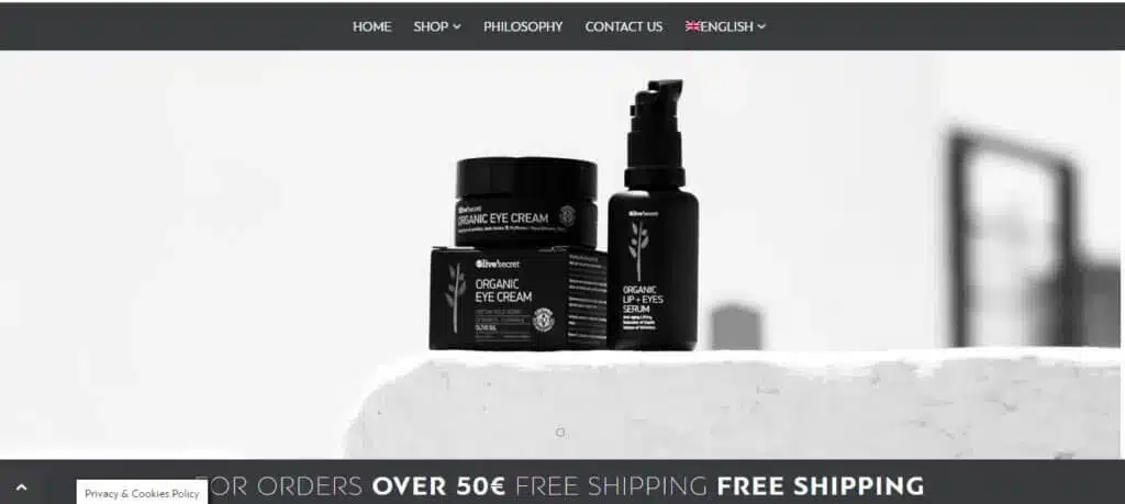 Un produit phare en plein écran et une phrase d’accroche (par exemple, livraison offerte au-delà d’un certain montant d’achat) sont des pratiques toujours efficaces, mais il est de plus en plus courant de voir des pop-ups de bienvenue ou des bannières RGPD personnalisées dès l’arrivée sur le site. En scrollant sur la page d’accueil, vous aurez des informations sur les produits les plus populaires ainsi que sur les ingrédients. Enfin, la partie shop est organisée en plusieurs sous-onglets : différentes parties du corps, produits de protection solaire ou cosmétiques naturels. L’ajout au panier est instantané et visible sur tout le site. Il est également courant d’offrir la création de compte, une wishlist, et l’intégration de moyens de paiement modernes comme Apple Pay ou Google Pay, désormais largement adoptés.