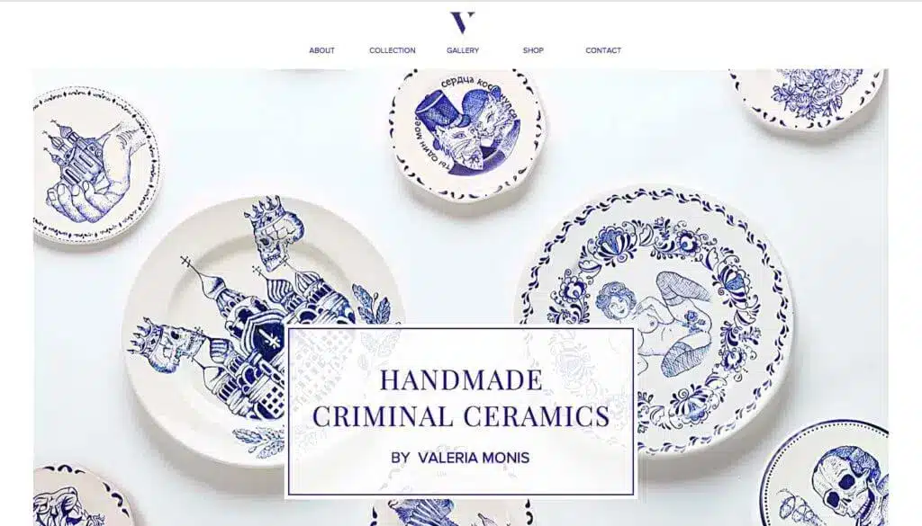 Lorsque vous arriverez sur ce site e-commerce créé avec Wix, vous aurez tout de suite un aperçu concret des produits en vente sur ce site, c’est à dire des assiettes en céramique fait main. Le menu du haut regroupe toutes les pages nécessaires à la bonne compréhension de la marque. Aucune page inutile. Sur la partie e-commerce, lorsque vous ajoutez un article à votre panier … non en faite il n’y a pas de panier visible. Si vous souhaitez poursuivre vos achats, retenez bien ce que vous avez déjà dans votre panier car rien ne vous indique ce que vous avez déjà ajouté.