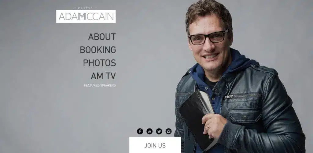 Comment réaliser un joli site professionnel ou personnel avec Wix ? Prenez exemple sur Adam McCain. Ce site portfolio met en avant les activités de ce monsieur à travers des photos prises sur le vif. Vous retrouverez toutes les informations principales directement sur la homepage, comme la galerie, la présentation ainsi que le formulaire de contact. Vous serez redirigez directement vers sa chaîne Youtube lorsque vous cliquerez sur « AM TV ».