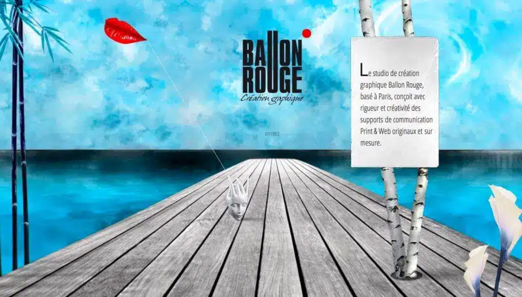 Vous en avez marre des sites ayant une tonne d’informations ? Sur le site du Studio Ballon Rouge, vous serez heureux. Un simple petit texte de présentation et un tout petit menu avec des informations de contact sur le bas, voici ce à quoi vous aurez le droit. Lorsque vous aurez cliqué sur le bouton « entrée », vous n’aurez pas énormément plus d’informations. Simplement un menu vertical avec 3 onglets qui vous redirigeront vers les pages en question.