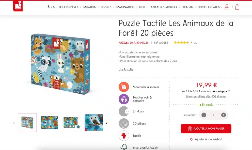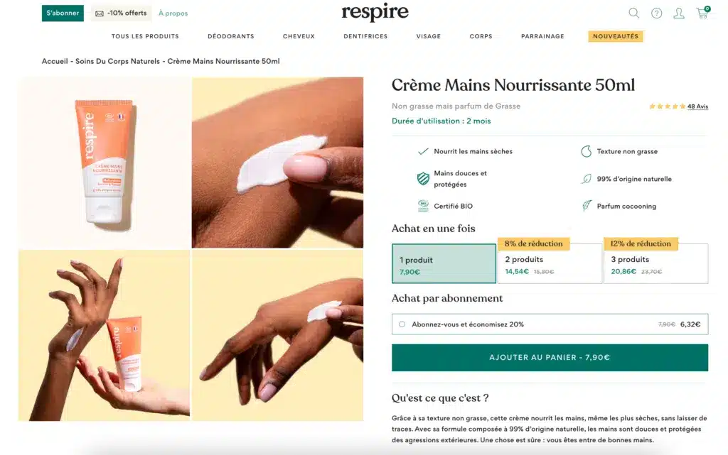 - La part belle laissée aux visuels du produit (packshot et mise en situation).