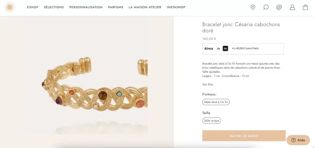 Proposer un paiement en plusieurs fois est un véritable atout pour certaines typologies de site e-commerce comme le luxe. Si vous proposez plusieurs types de paiement comme PayPal, Apple Pay, Google Pay, ou des solutions de paiement fractionné telles que Klarna ou Alma, précisez-le. Cela permettra au client de choisir son mode de paiement favori.