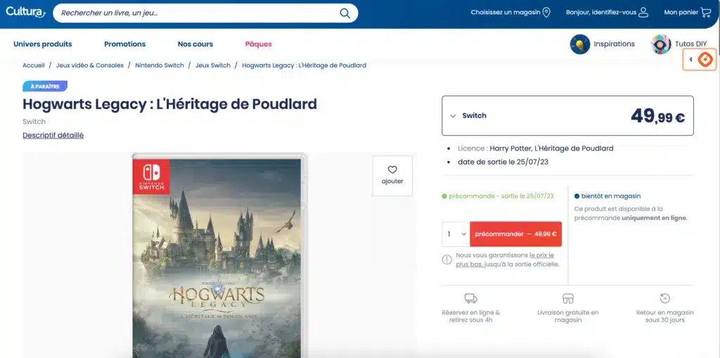Le revendeur de produits culturels Cultura propose une très large gamme de produits, pour tous les âges, toutes les envies et tous les goûts. Parmi les très bons exemples de page produits du site, nous avons sélectionné celle du nouveau jeu Hogwarts Legacy pour Nintendo Switch.