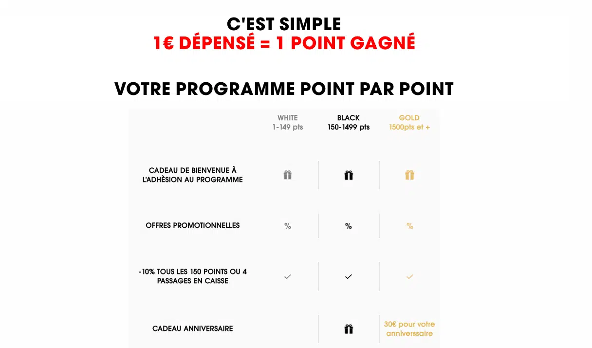 - Points de fidélité à cumuler pour obtenir une remise ou une livraison gratuite