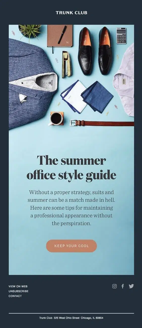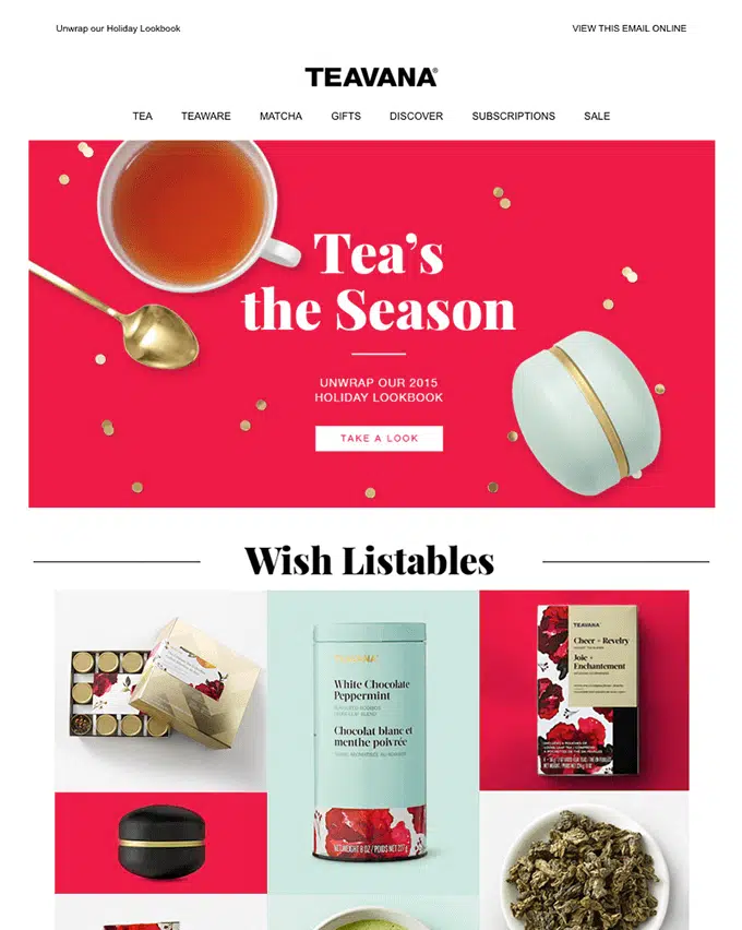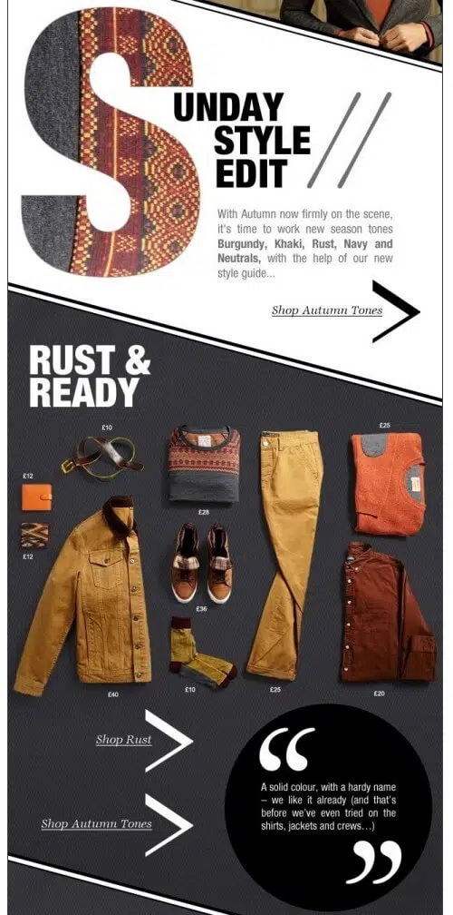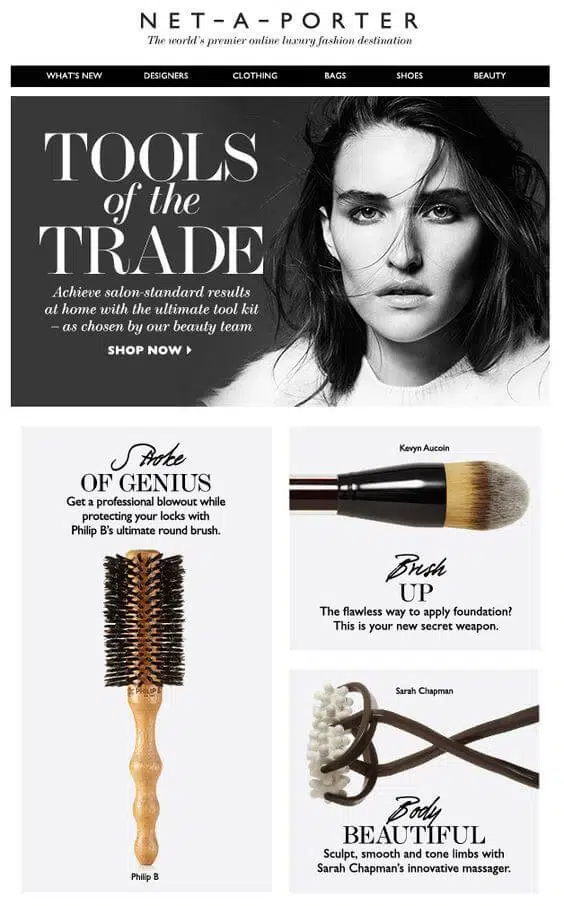 👉 À retenir : un modèle de newsletter e-commerce centré sur le désir. Simple, fluide, séduisante. L’image fait vendre autant que les mots.