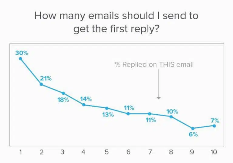 Certes, la plupart des gens abandonnent probablement trop tôt. Le plus important si vous souhaitez faire des affaires est d’attirer l’attention. Cela dépend aussi du contexte. Si vous essayez de fermer un énorme contrat pour des logiciels d’entreprises, vous effectuerez un suivi. Mais si quelqu’un ne veut pas mettre de backlink pour votre infographie, vous n’avez pas besoin de lui envoyer un email 6 ou 7 fois. Ici, je pense qu’il y a deux camps opposés. L’un d’entre eux dit essentiellement que vous ne devriez jamais envoyer de courriels froids, et encore moins de les relancer. L’autre dit que vous devriez faire ce qu’il faut pour conclure la vente, et cela amène presque toujours à plusieurs suivis, généralement 7 ou plus. Avant de « choisir » un camp, vous devriez vous poser quelques questions :