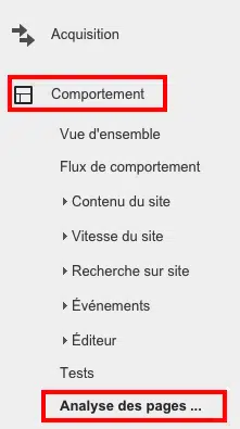Le petit plus : dans vos rapports (Menu ==> Comportement), des colonnes relatives à vos objectifs s’afficheront. La création d’objectifs permet d’enrichir vos rapports Google Analytics :