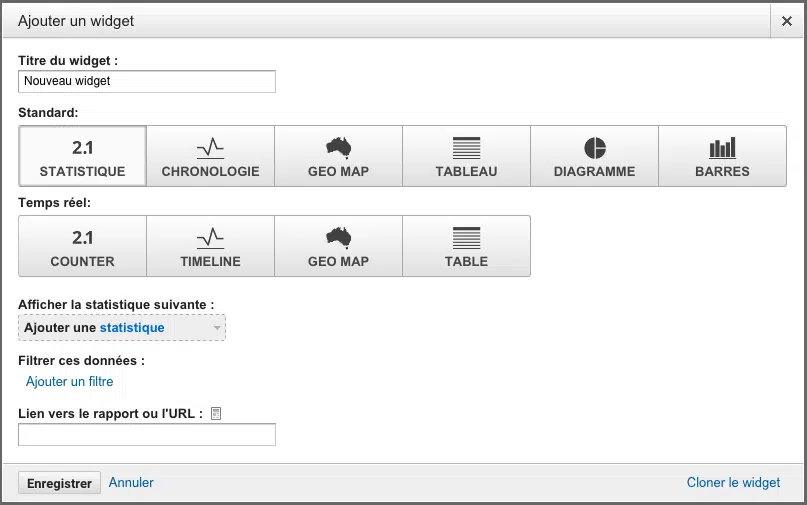 Comme vous le voyez, il est vraiment possible de créer des tableaux de bord ultra-personnalisés sur Google Analytics. Le choix en termes de widgets et de configuration est presqu’infini. Encore une fois, c’est à vous de déterminer quels sont les indicateurs et les données qui vous intéressent. Vous pouvez créer des tableaux de bord ultra-personnalisés avec toutes les datas/KPI qui vous intéressent, présentées dans l’ordre et sous le forme que vous souhaitez (camemberts, barres, diagrammes, etc.). Sur votre tableau de bord