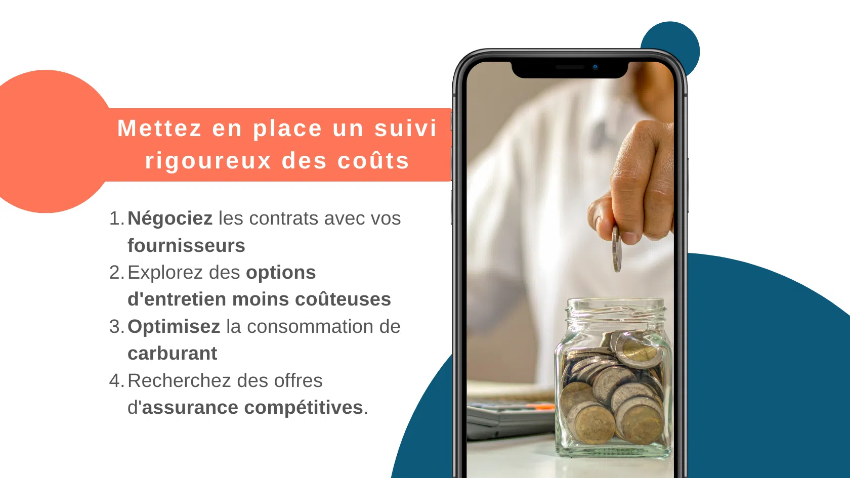 En examinant attentivement ces coûts, vous pourrez découvrir des solution pour réaliser des économies que vous n’auriez peut-être pas envisagées auparavant. Négociez les contrats avec vos fournisseurs, explorez des options d’entretien moins coûteuses, optimisez la consommation de carburant, recherchez des offres d’assurance compétitives. Chaque euro économisé contribue à l’amélioration de votre rentabilité globale.