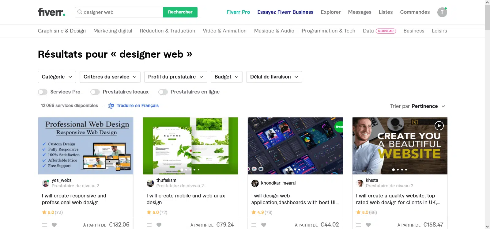 Fiverr est une plateforme reconnue pour le professionnalisme et le haut niveau de compétences proposées par les freelances qui y proposent leurs services. Les web designers disponibles sur Fiverr mettent pour la plupart d’entre eux en avant leurs compétences à travers des visuels rappelant leurs projets déjà réalisés. Ceci vous permet de choisir le freelance qui propose des résultats susceptibles de répondre à vos ambitions. Vous pouvez également passer par une agence web design.