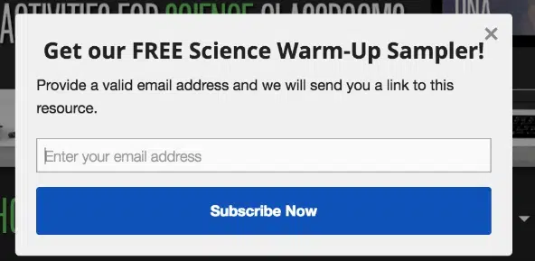 La valeur d’un popup ne dépend pas uniquement de la valeur du contexte. Un popup doit aussi avoir une valeur intrinsèque : un code promo, le téléchargement d’un livre blanc complet, l’accès à un document Excel ou à un spreadsheet, l’accès à des contenus de qualité, à des infographies auxquels les autres visiteurs n’ont pas accès, etc. Voici un exemple de popup avec une vraie proposition de valeur :