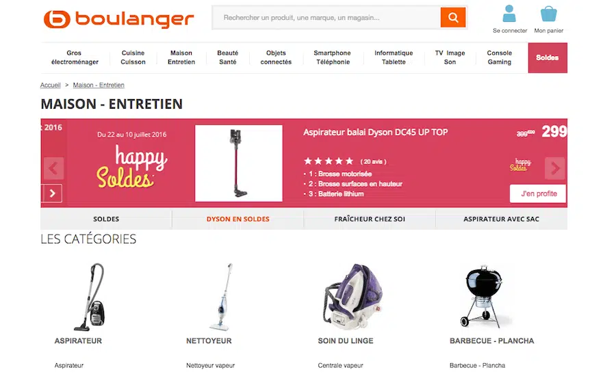 - Des moteurs de recherche visibles en haut d’écran (comme Zara ou Asos).