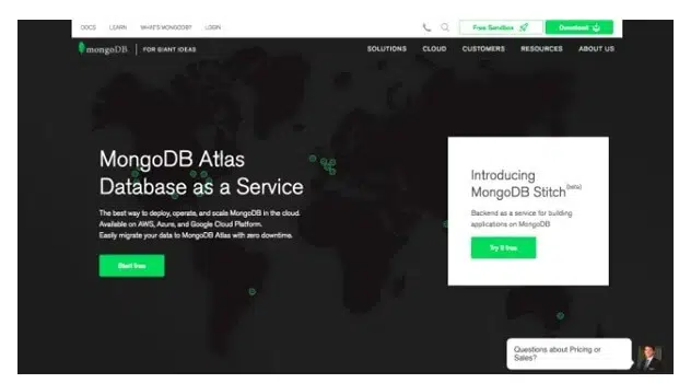 MongoDB est un programme de base de données hébergé dans le cloud et open-source. Pour augmenter le nombre de prospects et les qualifier plus efficacement, la société a installé un outil de messagerie conversationnelle sur son site, tel que Drift, Intercom ou HubSpot Chat. Le chatbot répond aux questions des prospects et conduit les visiteurs les plus qualifiés à effectuer un appel. Le bot commence par demander aux visiteurs du site s’ils ont des questions sur les prix ou les ventes.