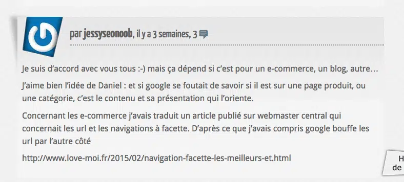 - Poster vos commentaires avec vos liens sur des blogs ou des forums qui ont un lien avec le sujet de la page que vous souhaitez linker.