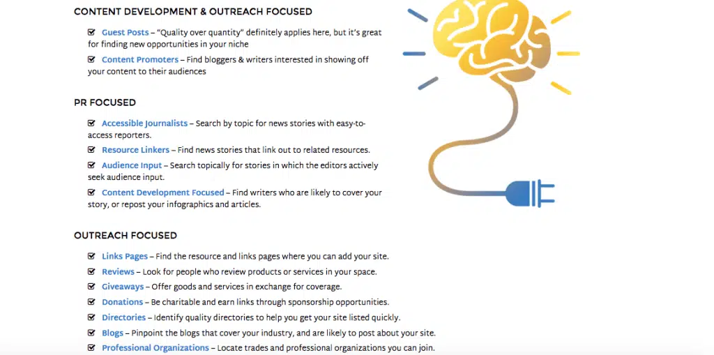 Certains sites proposent des listes de sites et de ressources en ligne. Repérez ces sites et tentez votre chance en demandant à apparaître sur les pages ressources. C’est facile à dire, mais plus difficile à faire. C’est vrai. Trouver les sites qui ont des pages ressources peut vite se transformer en parcours du combattant. Mais il existe des solutions pour aller plus vite. Nous vous conseillons notamment d’utiliser Link Prospector pour faciliter vos recherches. Cet outil est semi-payant (vous avez 5 crédits d’offert, ensuite l’utilisation est payante). Le principe est le suivant : vous renseignez une URL qui renvoie vers un de vos contenus, et Link Prospector produit pour vous un rapport qui vous indique toutes les sources de backlinks (y compris les pages ressources).