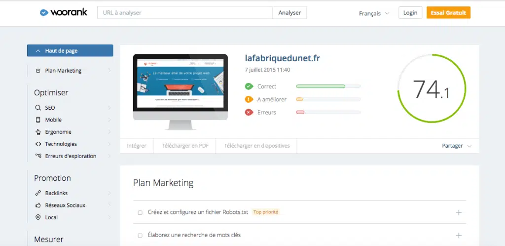 Woorank est un outil bien conçu et facile d’accès pour tester la qualité d’un site internet :