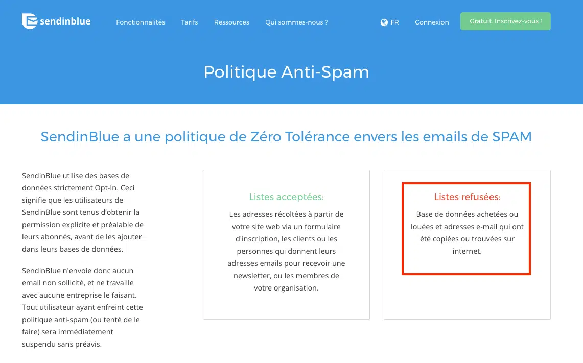 Et ce n’est pas tout : les fichiers achetés sont interdits par presque tous les services emailing, soucieux d’optimiser la réputation de leur adresse IP mutualisée. En clair, vous n’arriverez même pas à router votre campagne. Ce n’est même pas que vos emails seront bloqués par les FAI et webmails des contacts du fichier, mais ils ne partiront même pas ! C’est d’ailleurs pour éviter cet inconvénient que certains brokeurs proposent de gérer eux-mêmes les campagnes de prospection.