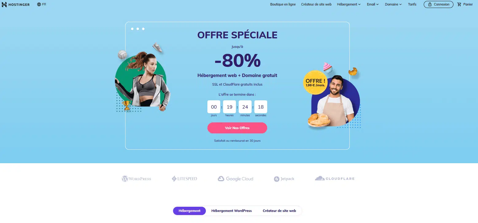 Exemple d’offre d’hébergement avec nom de domaine inclus proposée par Hostinger :