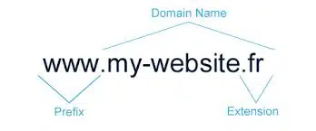 Le nom de domaine est tout simplement l’adresse qui permet aux internautes d’accéder à votre site. Il est l’élément principal de l’URL de votre site internet comme le montre l’illustration ci-dessous. Le nom de domaine a donc pour but de faciliter l’accès aux sites internet grâce à un nom court, reconnaissable, facile à retenir et à écrire. Il prend la forme d’un mot ou d’une phrase courte suivie d’une extension comme .com, .fr, ou l’une des nombreuses nouvelles extensions génériques (par exemple .tech, .shop, .io) qui sont de plus en plus utilisées. Cela donne par exemple « Votresite.com » ou « Votresite.io ».