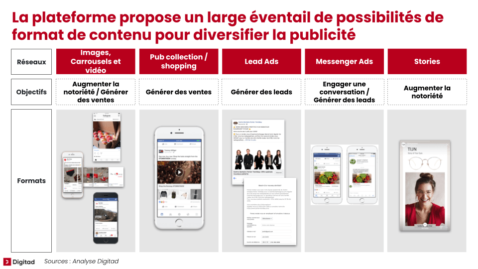 - Stories, vidéos, carrousels ou Dynamic Ads – il y en a pour chaque étape du parcours client, de l’attention à la conversion.