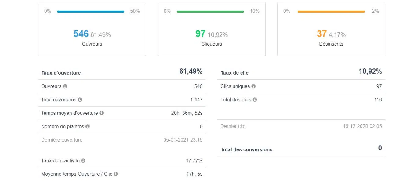 Les solutions d’emailing permettent d’analyser les résultats de vos campagnes via quelques indicateurs phares bien connus.