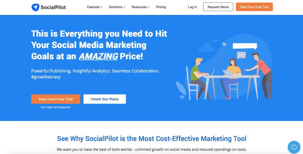 SocialPilot propose un abonnement mensuel et annuel. Nous vous recommandons les offres annuelles, car les prix sont plus alléchants : Agency (83,33 $/mois), Small Team (41,66 $/mois), Professional (25 $/mois). Tous les plans de SocialPilot incluent une période d’essai gratuit de 14 jours.