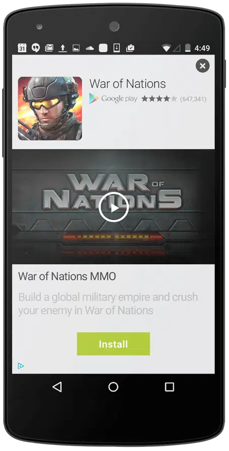 - Elles sont beaucoup plus visibles que les bannières. Si des utilisateurs peuvent très bien ne pas voir vos bannières, il est impossible de passer à côté d’une interstice. Et pour cause : elle s’affiche sur tout l’écran.