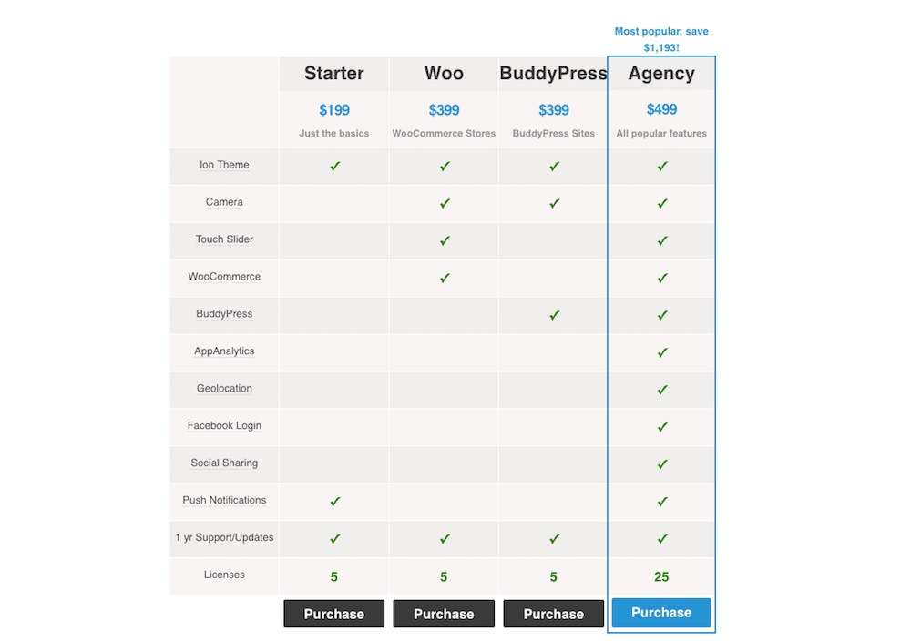 -Pour une application d’e-commerce ou BuddyPress : 399$