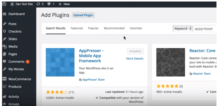 A partir de votre back-office, rechercher le plugin AppPresser, installez-le et commencez à personnaliser votre application mobile.
