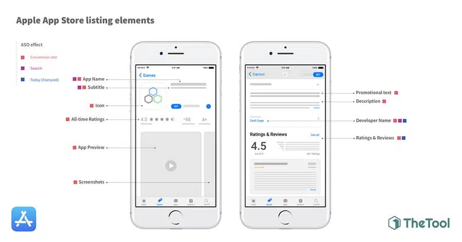 Bien que les deux « stores » présentent plusieurs similitudes, leur mise en page est différente et vous ne devriez ignorer aucun de ces détails lors de la planification de votre stratégie ASO. Tout d’abord, nous vous dirons quels aspects vous devriez prendre en compte dans l’App Store d’Apple, suivis de ceux de Google. À la fin, nous allons joindre un tableau récapitulatif avec toutes les différences pour vous faciliter la tâche.