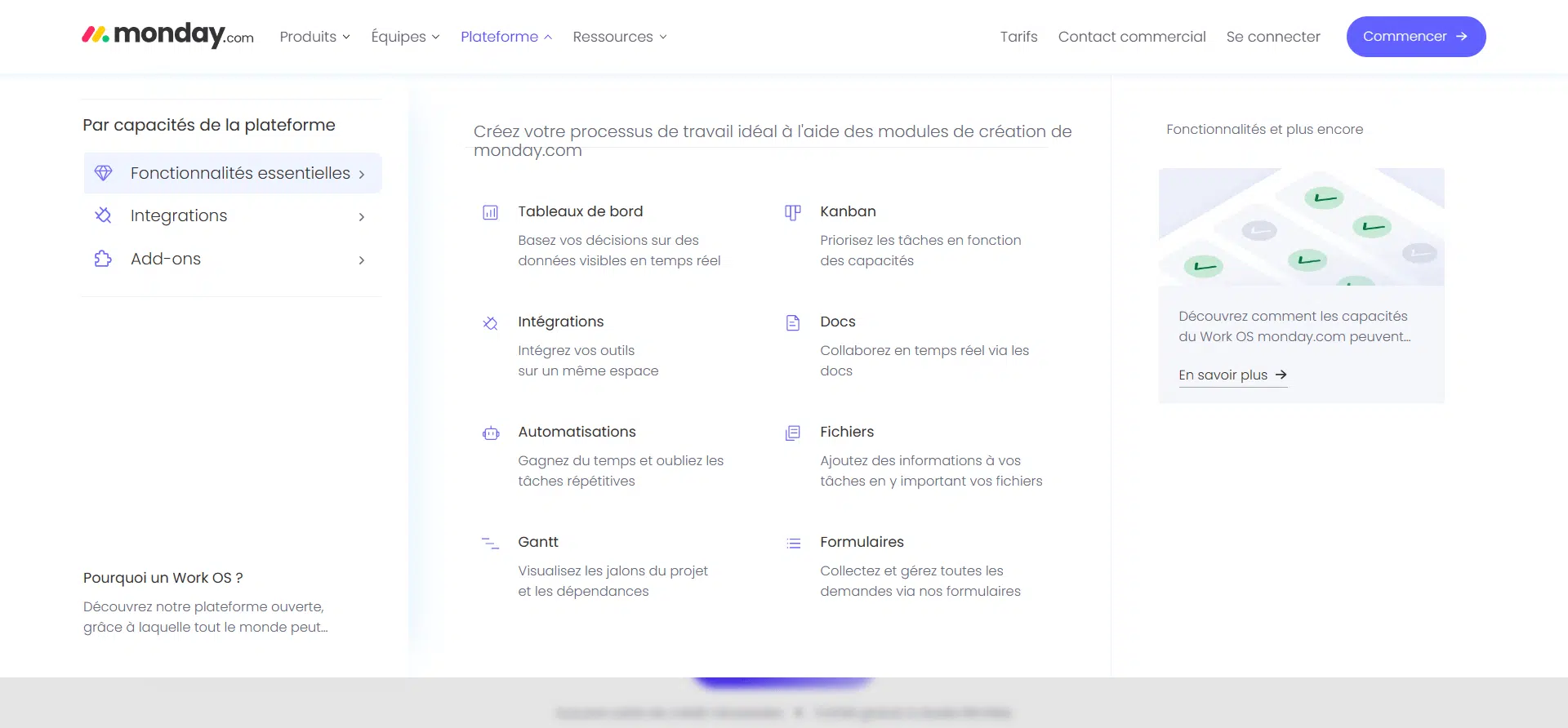 Monday.com se présente comme une plate-forme polyvalente et flexible qui agit comme un système d’exploitation complet pour le travail d’équipe. Monday.com offre une gamme complète d’outils de gestion de projet, de CRM, d’automatisation du flux de travail et de collaboration.