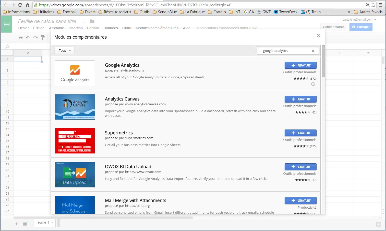 Etape 1 – Installer le plugin Google Analytics pour Spreadsheet