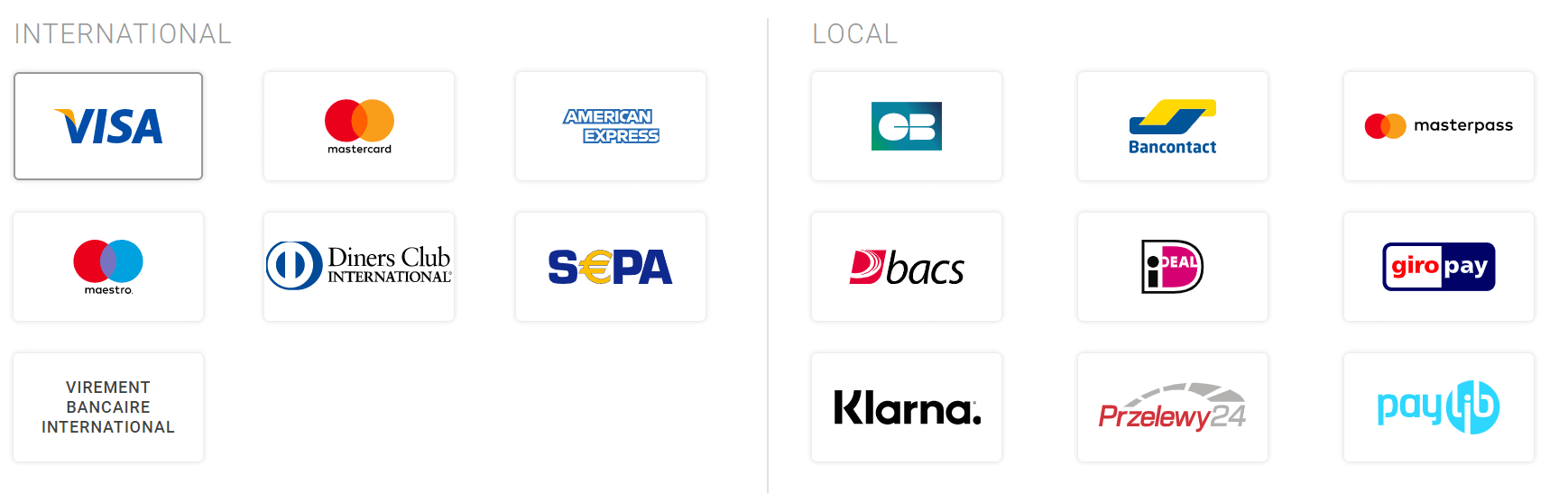 - Acquisition locale en Europe et au Royaume-Uni via une suite de paiement dédiée.