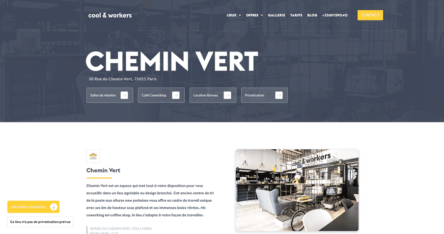 C’est une plateforme de coworking et de gestion de travail personnalisable. Elle est destinée aux espaces de coworking et aux entreprises qui veulent créer des espaces de travail modernes. Réservations, signatures de contrat, tableaux de bord personnalisés, automatisation des paiements, rapports, intégrations sont de très nombreuses fonctionnalités adaptées aux différents types d’espaces de travail.