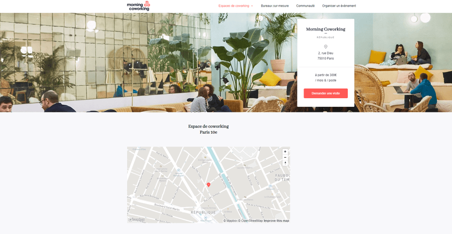 | Wework | Espaces de coworking et organisateurs d’évènements | Planifications des espaces, possibilité de rechercher des collègues pour travailler en équipe | Payant, tarif non communiqué | Web/mobile |