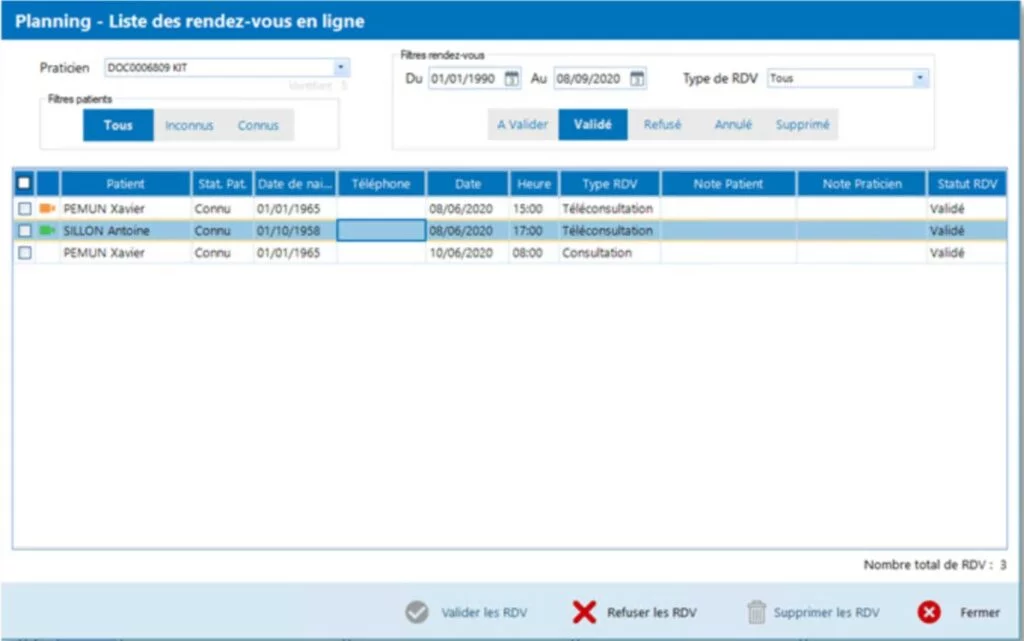 Cette fonctionnalité permet de gérer votre emploi du temps ainsi que celui de vos collègues, si vous travaillez en groupe. Vérifiez également la prise de rendez-vous en ligne, qui est un avantage certain pour les patients et peut faciliter la gestion de votre agenda. - La gestion des dossiers patients