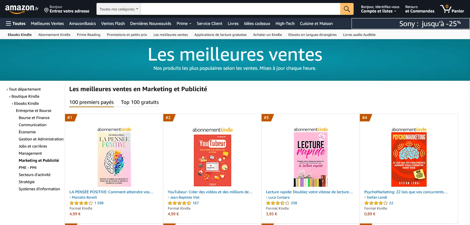 Enfin, regardez sur les plateformes proposant des ebook comme Amazon Kindle pour savoir si votre sujet est déjà couvert, et si votre thème semble se vendre bien. Tapez simplement les mots-clés correspondant à votre sujet et examinez les résultats, en particulier les best-sellers.