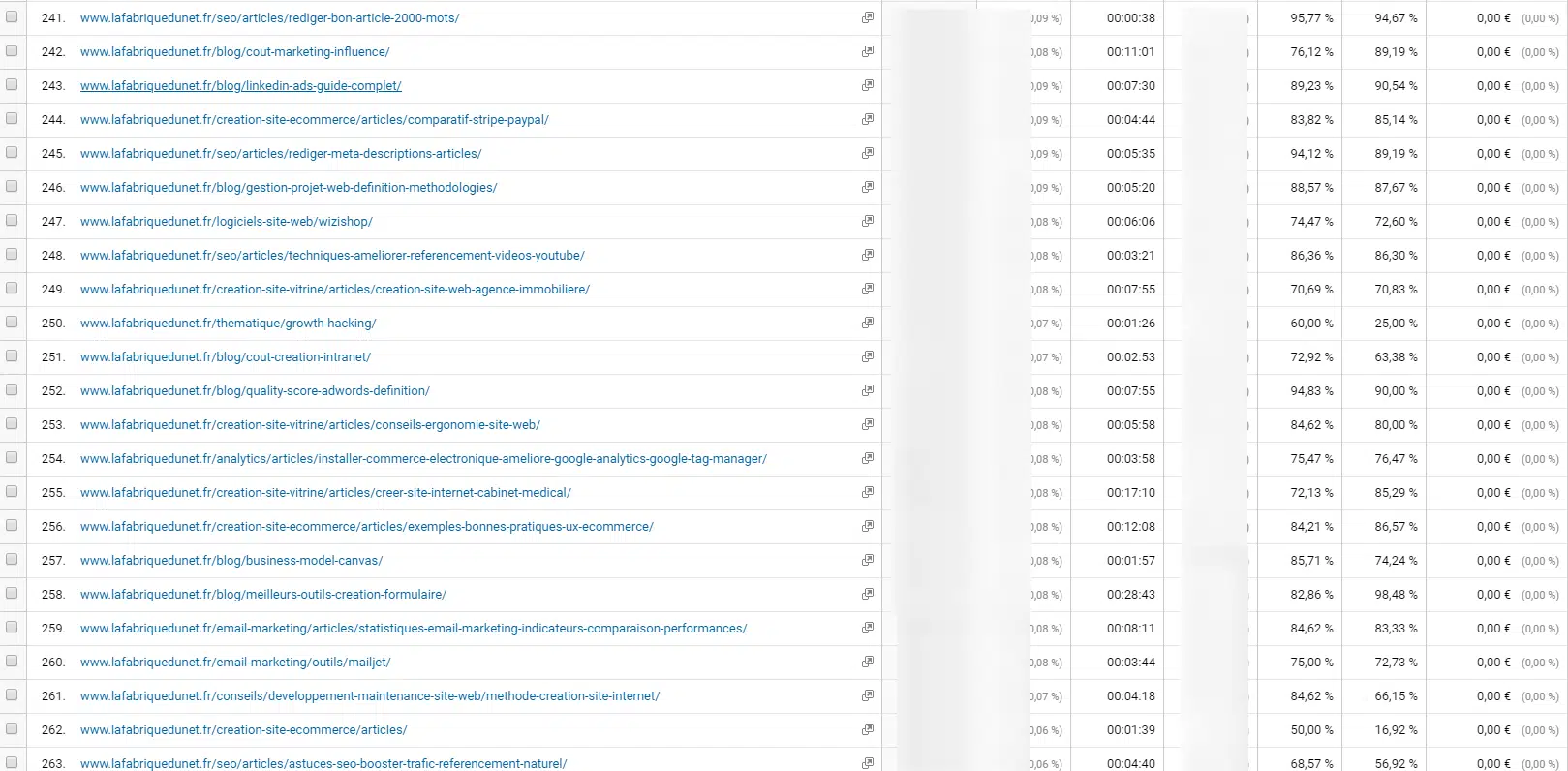 Vous devez les pages phares de votre site, celles qui génèrent le plus de trafic, de revenus, de conversions. Vous devez prioriser vos efforts sur ces pages d’où l’importance de bien toutes les identifier. Pour cela, vous pouvez utiliser :