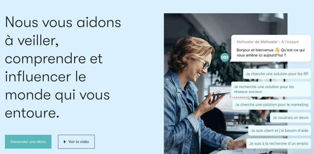 Meltwater combine veille médias, social listening, base de journalistes et reporting PR. Il convient aux directions communication souhaitant mesurer retombées, piloter les relations presse et surveiller la réputation globale avec des tableaux de bord unifiés.