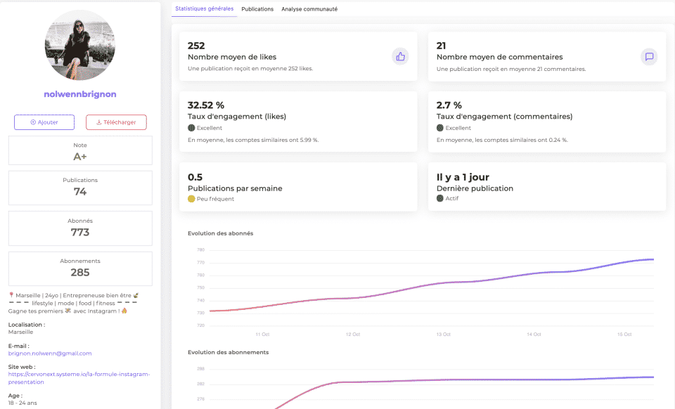 Mais avant, insistons sur le fait que l’objectif n’est pas de contacter n’importe quels influenceurs, mais uniquement ceux qui correspondent à votre marque, à votre offre et à votre niche. Vous devez cibler les influenceurs, en investissant vos efforts sur les influenceurs qui disposent d’une audience constituée majoritairement de potentiels clients. Pour identifier les influenceurs qui vous correspondent, vous devez en particulier analyser le type de contenus qu’ils partagent à leur audience et la « grosseur » de cette audience. Le volume de l’audience se mesure principalement par le nombre d’abonnés / followers sur les réseaux sociaux, ainsi que par l’engagement généré sur ces plateformes. Le trafic blog reste un indicateur secondaire, la majorité de l’activité d’influence se concentrant désormais sur les réseaux sociaux.