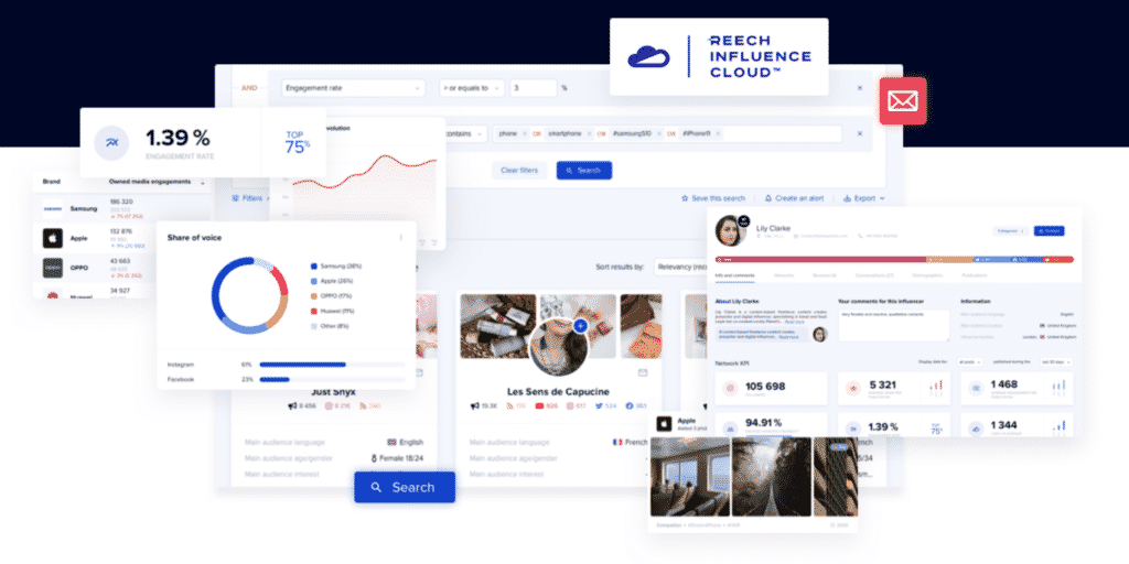 Grâce à son interface intuitive, il est possible de créer des listes d’influenceurs, d’automatiser la prise de contact et de recevoir des notifications sur les nouveaux contenus publiés par les profils suivis. Upfluence s’intègre aussi avec d’autres outils marketing pour optimiser la gestion des campagnes d’influence.